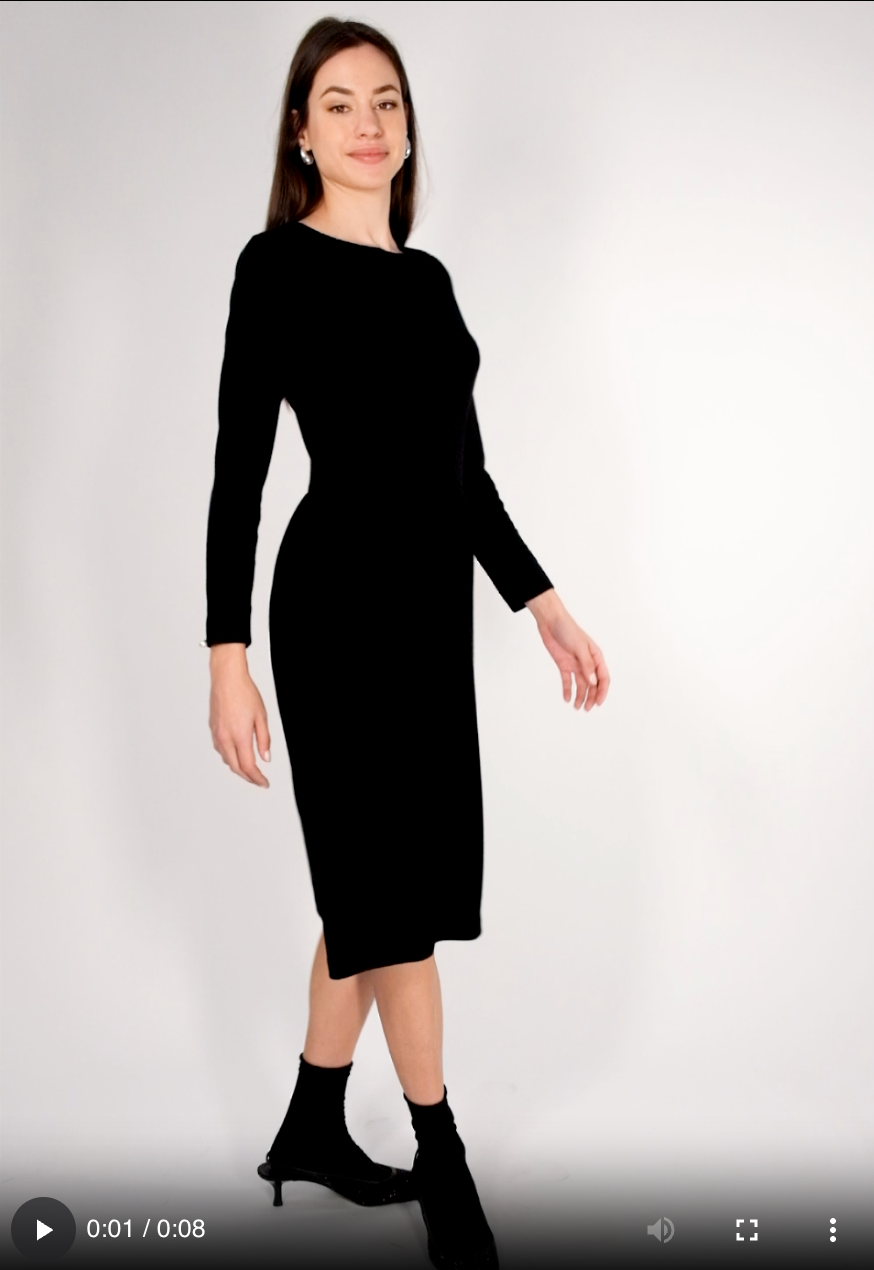 A timeless long-sleeved dress crafted from lightweight merino wool for effortless elegance. Featuring a round neckline, defined waist and softly gathered skirt, this midi-length style offers a clean silhouette with a feminine touch for both work and evening wear.
