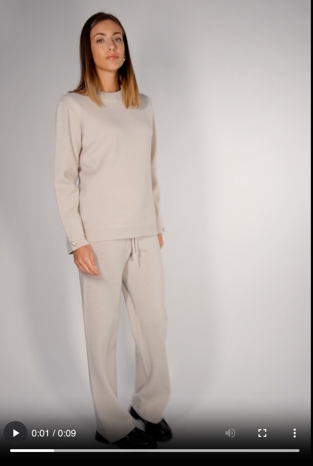 A relaxed crewneck sweater in a soft wool blend (90% Merino Wool 10% Cashmere) designed for comfort and understated elegance. Featuring ribbed cuffs and hem with subtle button detail at the sleeve, this timeless piece pairs easily with both tailored pants and jeans